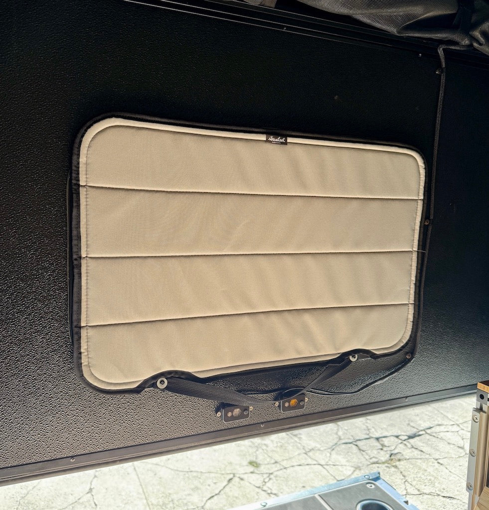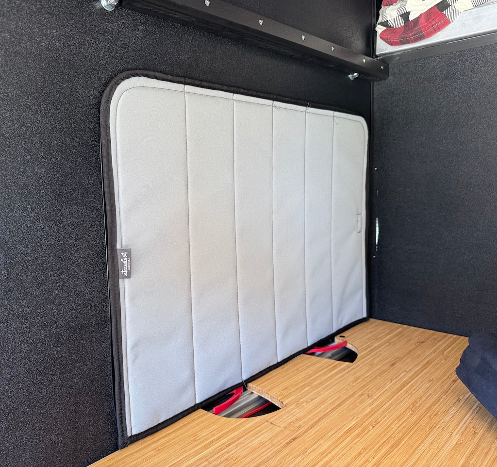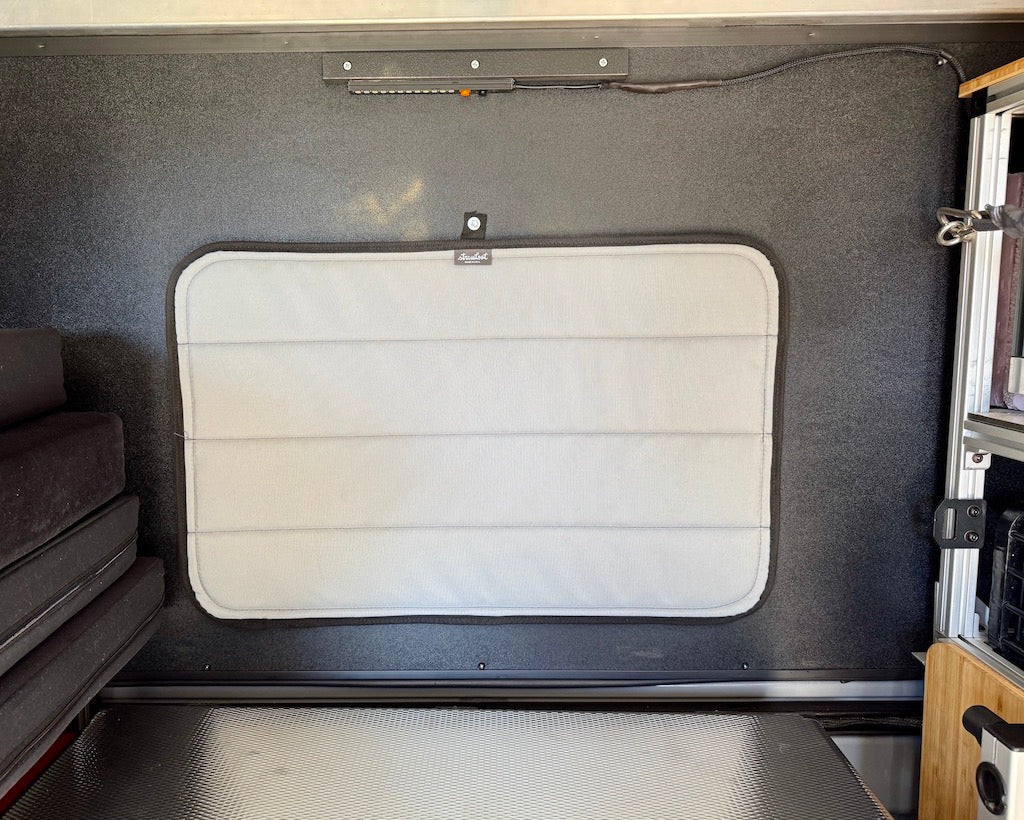 We designed these insulated window covers to create privacy and help regulate the temperature inside the camper. All covers are magnetic and adhere to adhesive steel strips that are provided and pre-cut for each specific window.